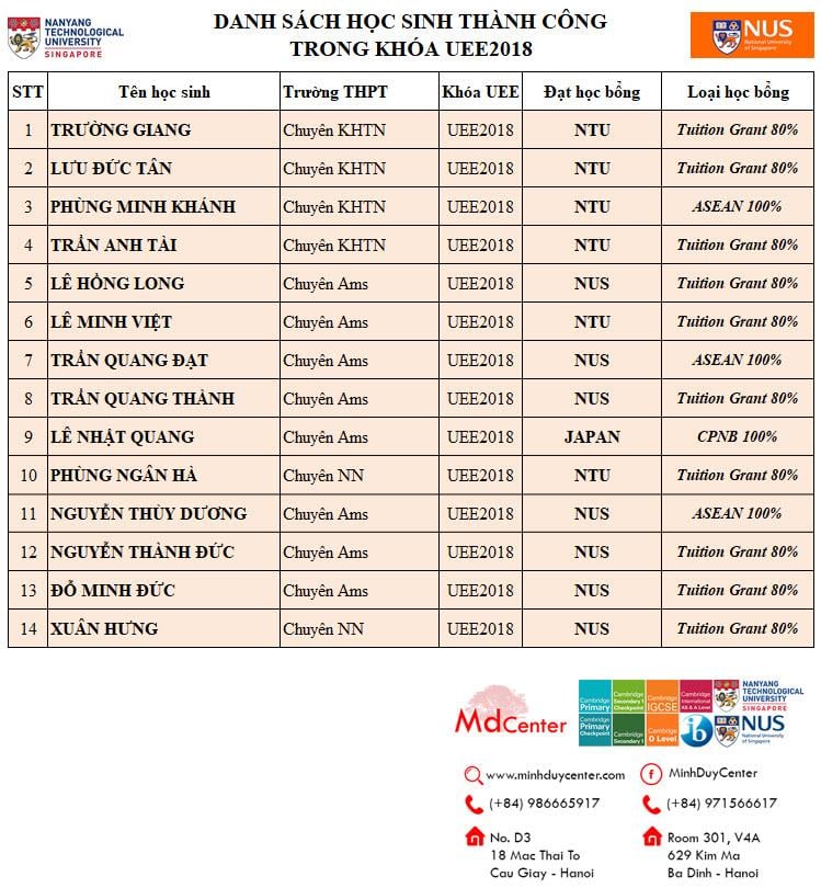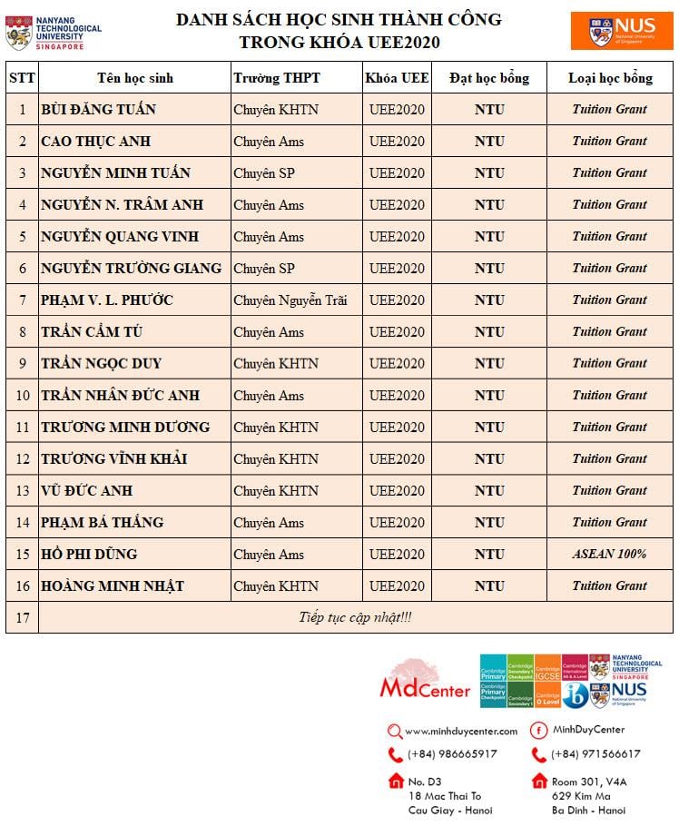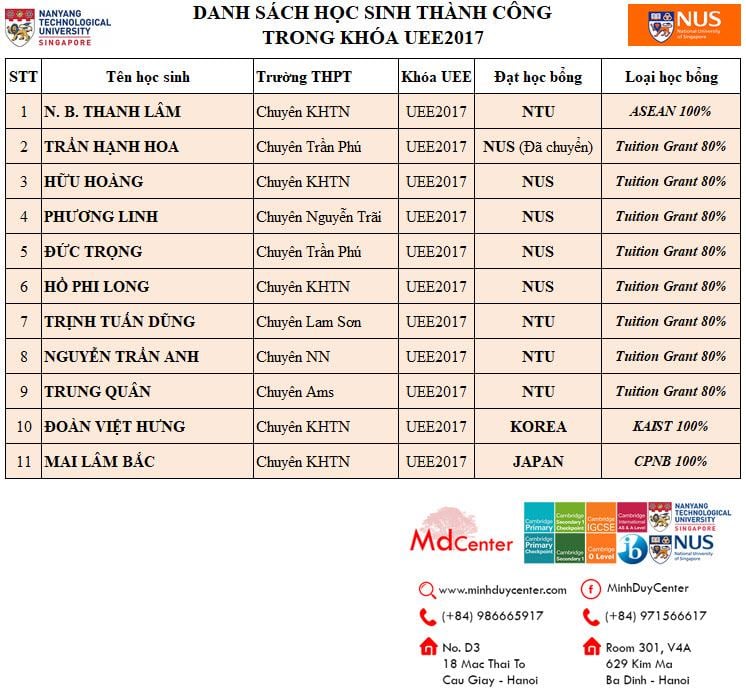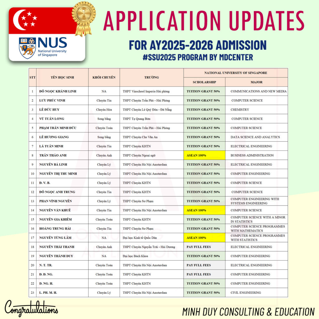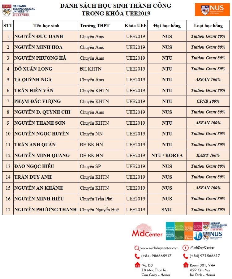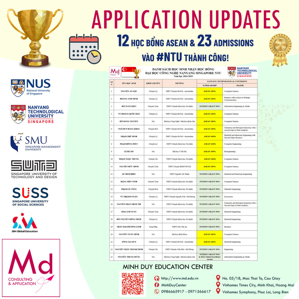 DANH SÁCH HƠN 500 HỌC SINH THÀNH CÔNG NHẬN HỌC BỔNG DU HỌC SINGAPORE QUA CÁC NĂM!